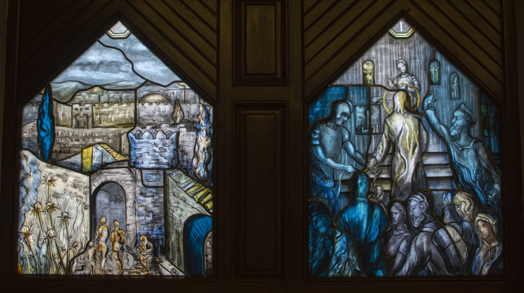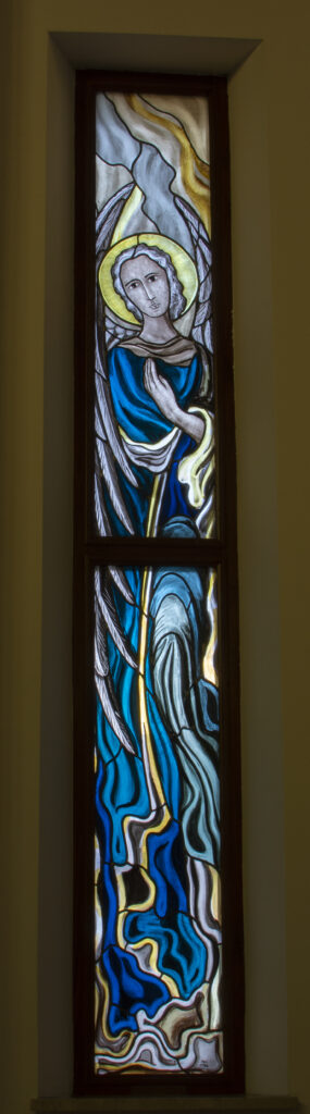 Witraże w prezbiterium- rok 2009 Witraże w nawie – rok 2019