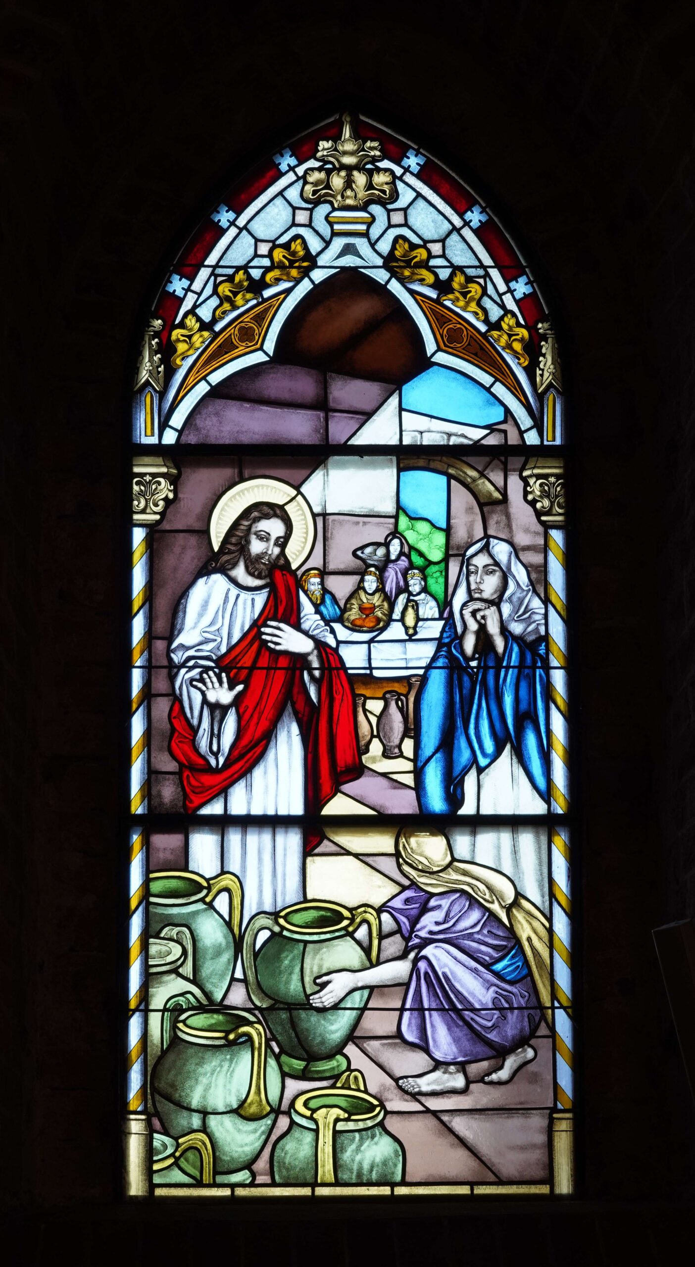 W kolejności mamy tu przedstawienia ilustrujące sceny z Nowego Testamentu: okno nr I Ostatnia Wieczerza, nII Chrystus Dobry Pasterz, nIV Wniebowstąpienie, nV Chrystus powołujący św. Piotra, nVI Chrzest Chrystusa, nVII Wesele w Kanie Galilejskiej, sV Scena z Marią, sVIII Zesłanie Ducha Świętego, sIX Chrystus z Niewiernym Tomaszem, sX Zmartwychwstanie