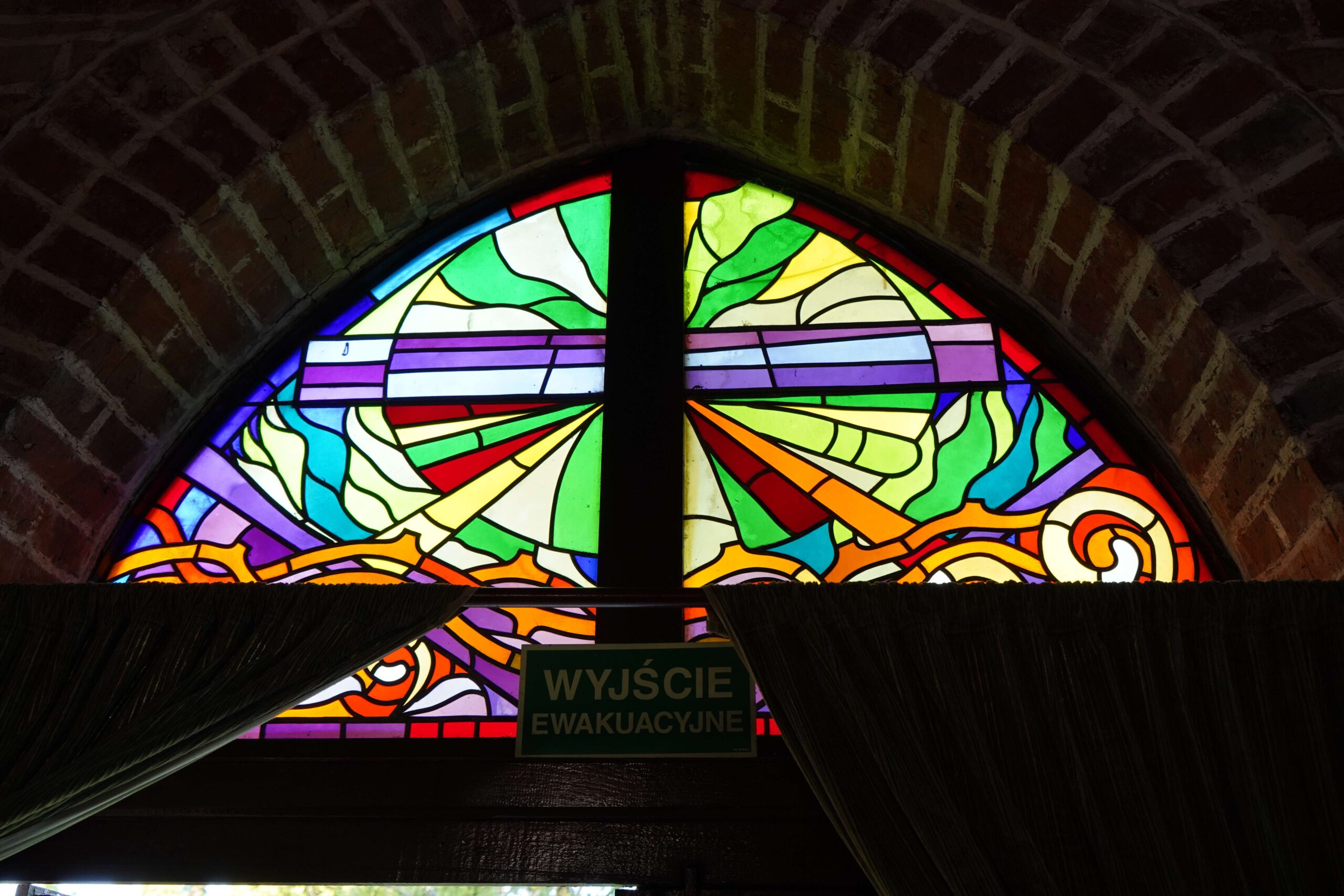 – witraże w technice mieszanej są wykonane ze szkieł antycznych z Huty Szkła Jasło o charakterystycznej dla tego producenta fakturze i kolorystyce oraz ze szkła okiennego float.